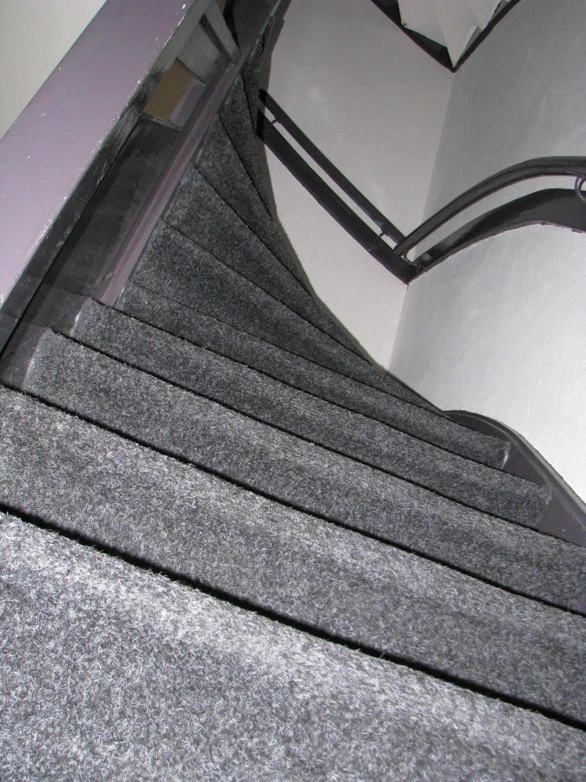 The very narrow and steep steps in Budgethotel de Zwaan building 2. The shower and toilet rooms were on the first floor, while our room was on the second floor.