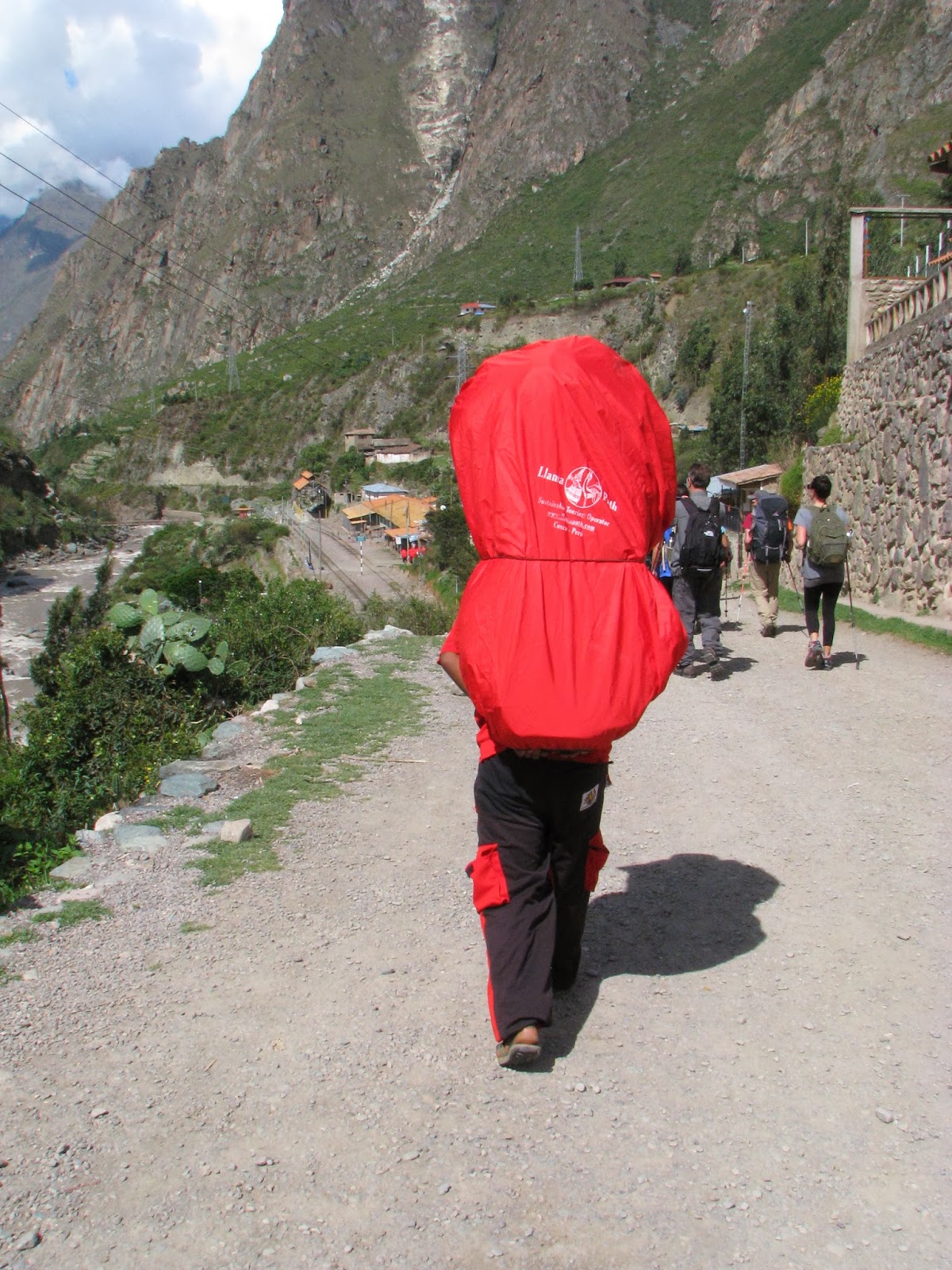 Walking behind a Llama Path porter to the kilometer 82 checkpoint.