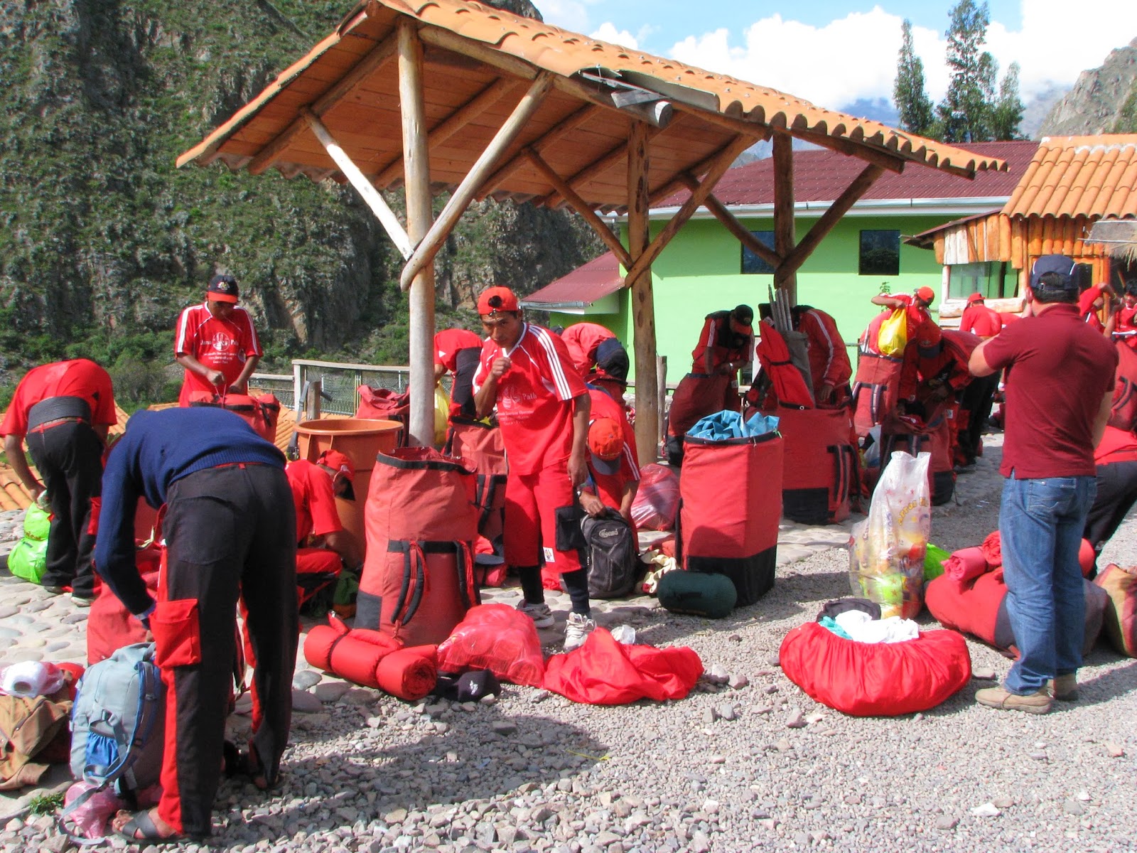 Porters packing their bags at kilometer 82.