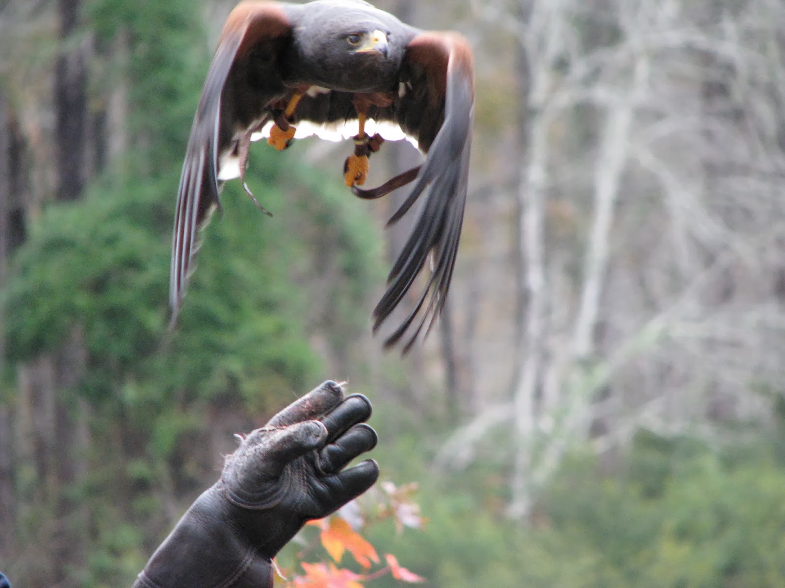 Once inside the Gardens, our first stop was the 12:30pm Birds of Prey show. In this show, we saw and learned about four different birds of prey that were unable to survive in the wild due to either physical limitations (one bird had been shot in the wing) or mental limitations (grew up with humans, and hence did not learn to behave like a bird). Specifically, we saw a great horned owl named Cedar, a red tailed hawk, and a Harris’ hawk named Rohmann soar around us. Then a trainer carried a barred owl named Olive around for us to learn about and see. Callaway Gardens currently has 16 birds of prey under their care, so you never know which birds will appear at any given show. However, some birds – like Rohmann – clearly enjoy soaring around during the shows.