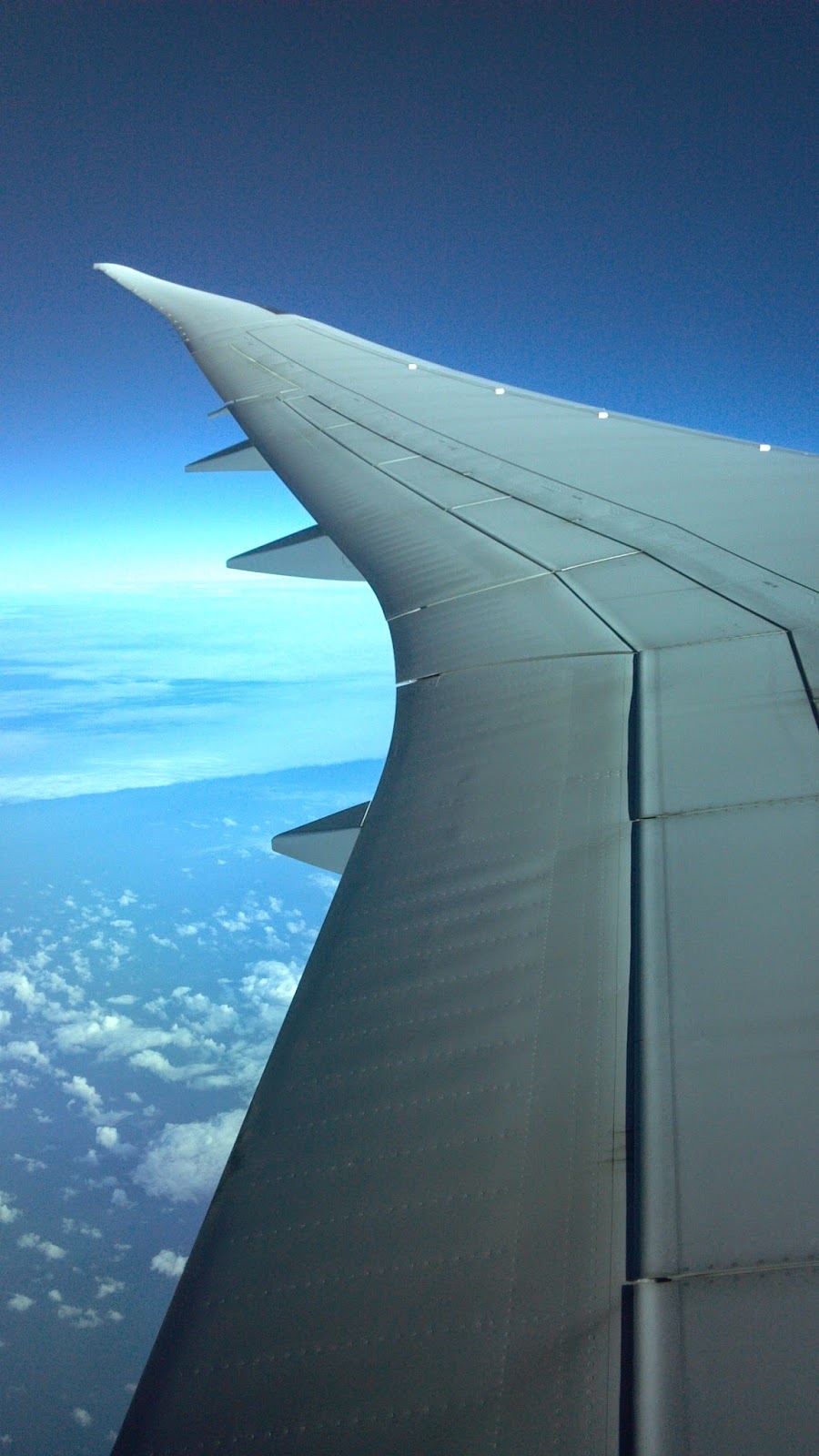 The new Dreamliner is nice! The wings are fun to watch – from an engineering standpoint, it seems to be the future of aviation. On the ground they are flat like a normal plane, but in the air they curve upward like a bird! The seats are comfortable, the 5 button-press setting windows are cool (5 brightness settings replace normal window shades), and the in-seat entertainment is extensive. I watched three episodes of Parks and Rec, some Simon’s Cat videos, and played with their cool interactive flight tracking system. It was a very nice experience. We also got nice headphones (not earbuds), a blanket, and a toothbrush with toothpaste.